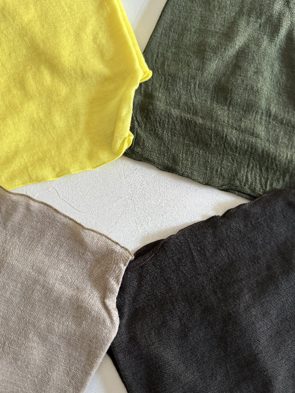 素材的には防縮加工を施しているので水洗いが出来ます。ただやはりウールなのでウール用の洗剤でウール洗いモードで洗濯していただくのが一番です。もちろんネットに入れるのもお忘れなく!素材としては薄くふわふわでさらりとした肌触りが特徴。