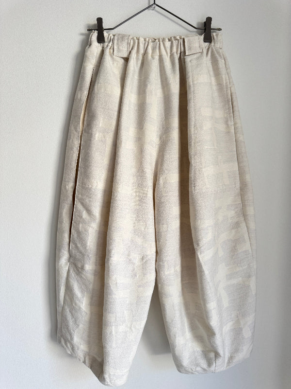 ウエストにタック、そしてひざに切替のカーブを入れてふくらみが特徴のパンツです。