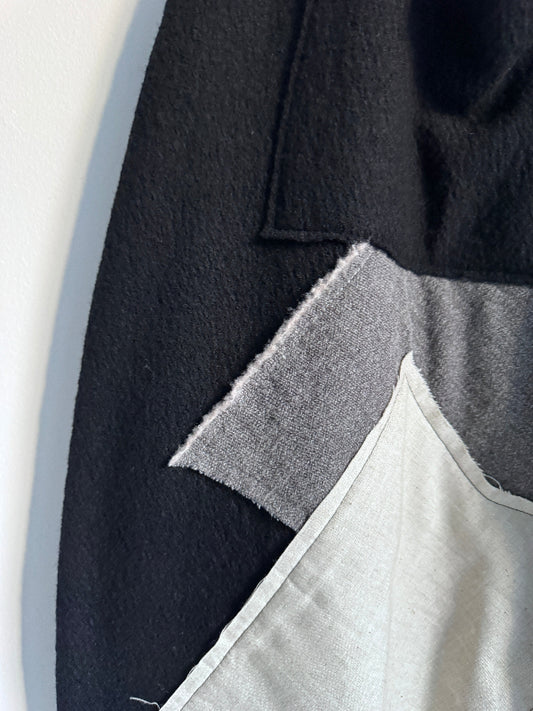 ゆったりと丸みのあるシルエットで脇にマチが入った感じはどこか愛らしさも感じさせます。